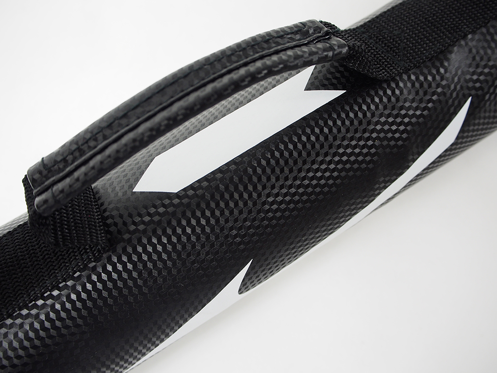 太さ7.5cm。矢収納部(下段のファスナー下)の長さ108cm/100cm。 |