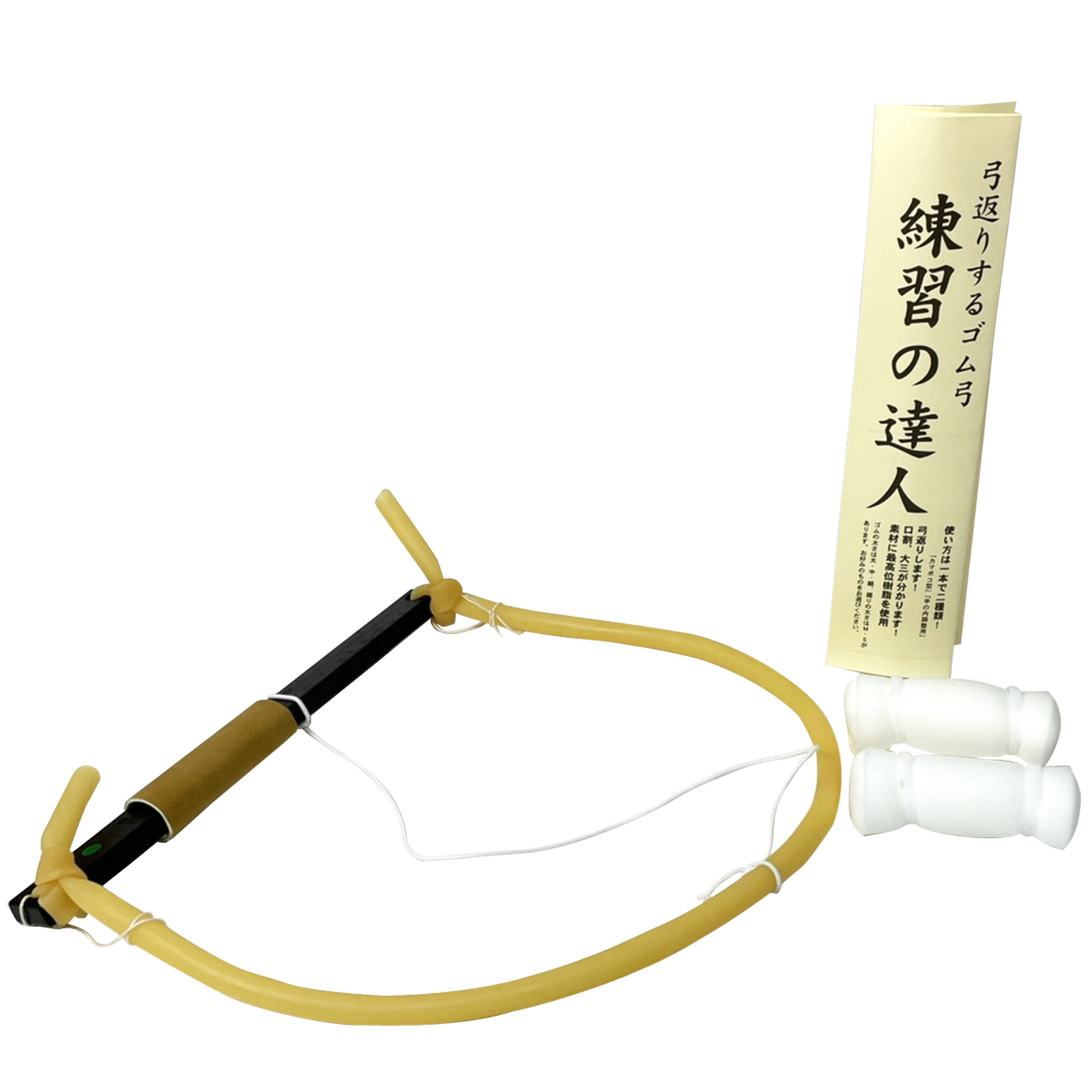 | 今回、コロナ休校で部活も1ヶ月休みの息子の為に購入しました。いつも即日発送ですぐに手元に届くので本当にありがたいです。 またこのゴム弓は弓返りもでき、口割りゴムもあるので、ただゴム弓を引くのと違って色々に意識できて良いそうです。「いたくなーい」をつけて頂いたのでとても喜んでおりました。新学期までの長いお休みですが、このゴム弓で少しでも身体が忘れるのを防ぐようがんばるそうです。ありがとうございました。 |