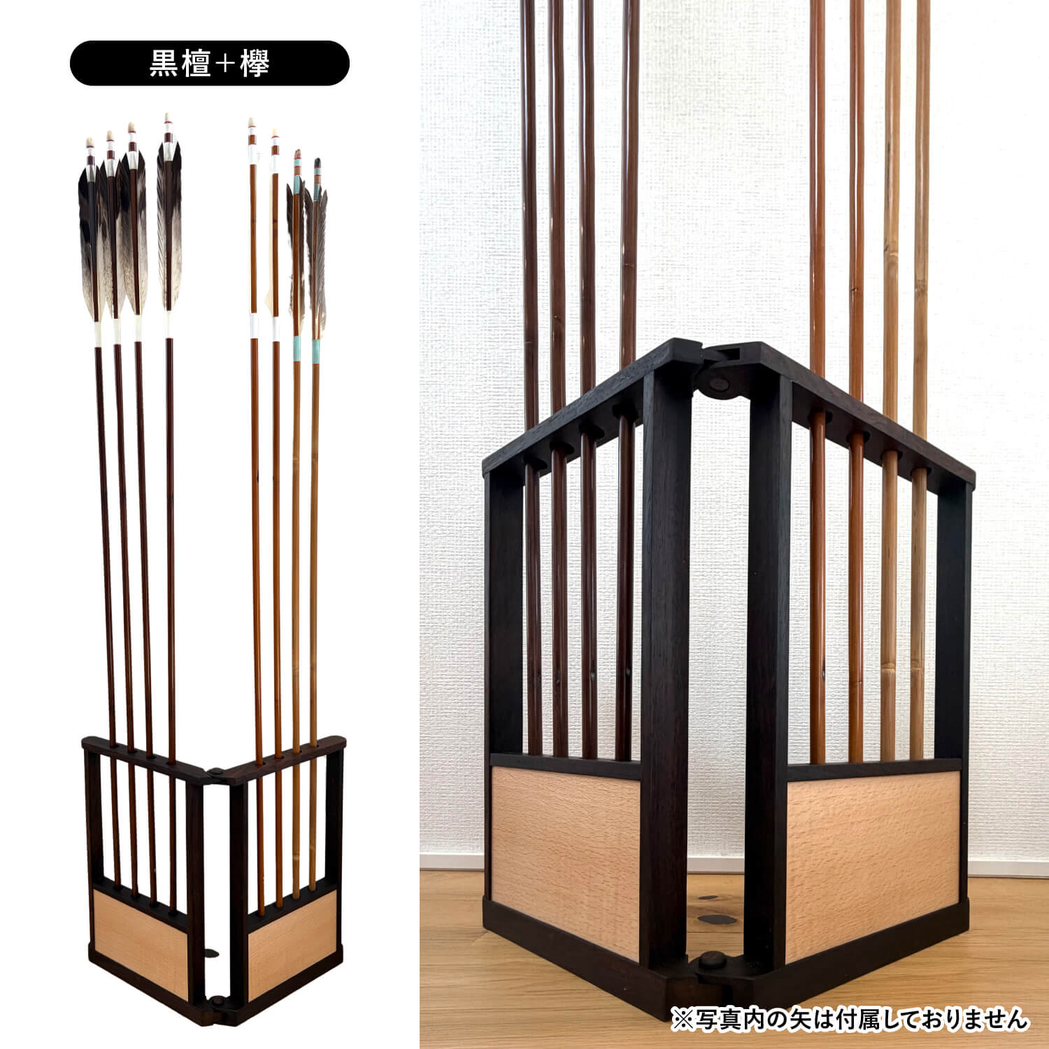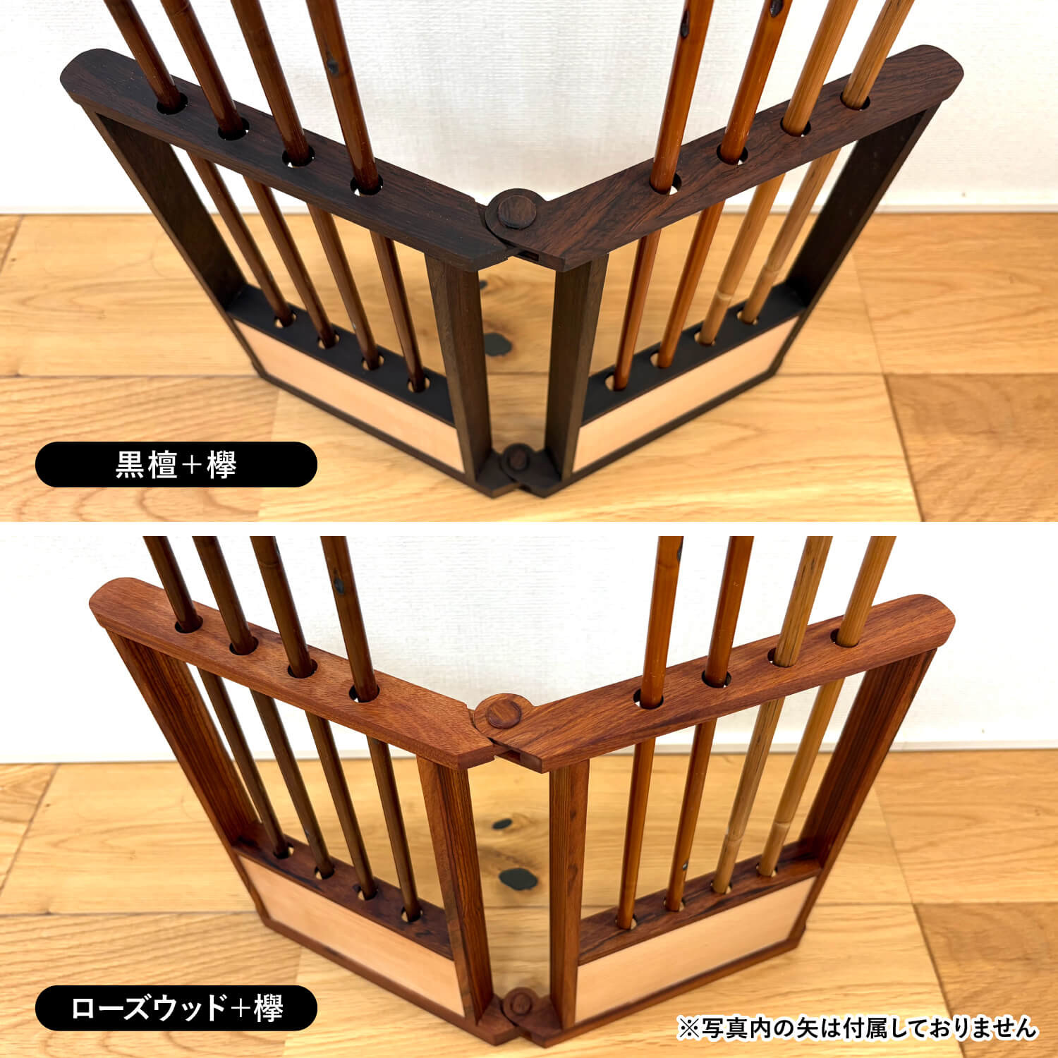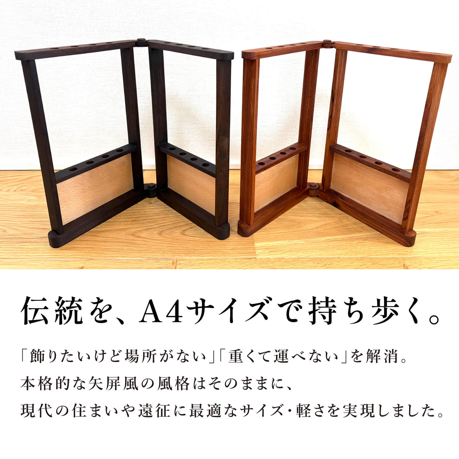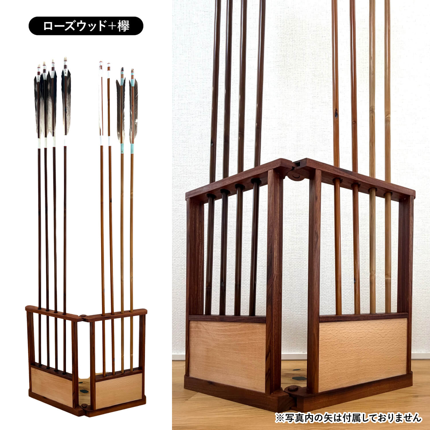 置き場所に困っていませんか?大切な矢を、もっと身近に。 「伝統的な矢屏風を飾りたいけれど、現代の住まいではスペースが足りない」「遠征や講習会に持っていくには重すぎる」そんなお悩みはありませんか? 重厚な備品は魅力的ですが、日常生活に取り入れるのは難しいものです。本製品は、そんな弓道を愛する皆様の「飾りたい」「持ち運びたい」という願いを同時に叶えます。 A4サイズの革新。デスクや棚に収まる、理想のコンパクト設計。 高さ約30cm、幅約21cm。一般的なノートと同じ「A4サイズ」という驚きのコンパクトさを実現しました。 リビングの棚や書斎のデスクなど、わずかなスペースがあなた専用の道場に早変わり。 お気に入りの矢を、押し入れに眠らせることなく、いつでも目に触れる場所に凛として佇ませることができます。 重さわずか700g。指導の場や行事へ、軽やかに携行。 本格的な造りながら、重量は約700gと非常に軽量です。 指導者として講習会に赴く際や、大切な行事での展示の際も、鞄に入れてスムーズに持ち運ぶことが可能です。 「良いものを、必要な場所へ」という現代のライフスタイルに合わせた機能性が、あなたの弓道ライフの幅を広げます。 金属不使用の伝統工法。天然素材が紡ぐ、本物の質感。 接合部や開閉部には、釘などの金属類を一切使用していません。 古来より伝わる伝統的な工法を採用し、天然素材のみで仕上げられたその姿は、現代的なシンプルデザインの中にも確かな風格を漂わせます。 指先に触れる木のぬくもりと、一切の無駄を削ぎ落とした美しさは、弓道の精神性にも通じる逸品です。 選べる2つの表情。銘木が織りなす、洗練されたコントラスト。 「黒檀+欅(ケヤキ)」と「ローズウッド+欅(ケヤキ)」の2つのバリエーションをご用意しました。 深みのある黒檀や気品漂うローズウッドが、明るい色味の欅を引き立て、矢の美しさを最大限に強調します。 お部屋のインテリアや、お持ちの弓具の雰囲気に合わせて、あなただけの最適な組み合わせをお選びいただけます。 特別な贈り物として。お世話になった方へ、感謝を形に。 昇段のお祝いや、指導者の方への感謝の印として、これほど相応しい品はありません。 「場所を選ばず、長く愛用できる」という実用性と、伝統工法の「信頼性」を兼ね備えたこの矢立ては、贈る方のセンスと敬意を雄弁に物語ります。 ご自身へのご褒美はもちろん、大切な門出を祝う一品として自信を持ってお勧めいたします。 ※写真内の矢は付属しておりません。 |