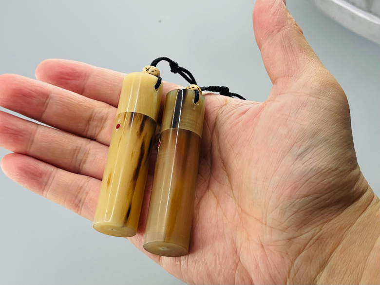 牛角製の高級感あふれる粉入れになります。