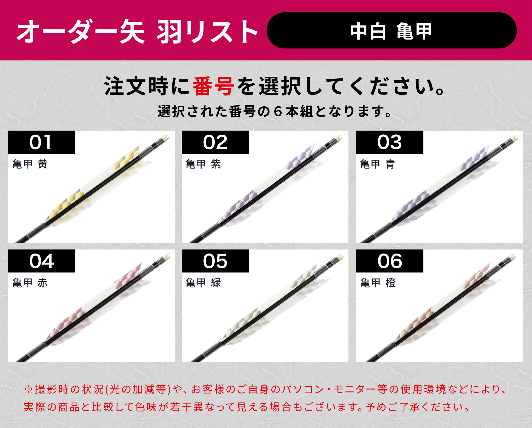 STEP1)シャフトのサイズ (1813/2115) STEP2)羽根の種類 (羽リストから1種類) STEP3)矧ぎ糸か和紙巻き (矧ぎ糸か和紙巻きかどちらかの中から1種類) STEP4)矢尺 (初心者の方は矢束プラス10cmから15cm)※指導者によくご確認下さい。 |