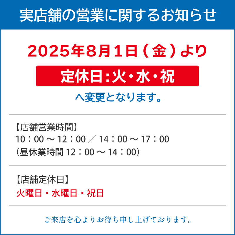 2025年8月1日より定休日を変更いたします。